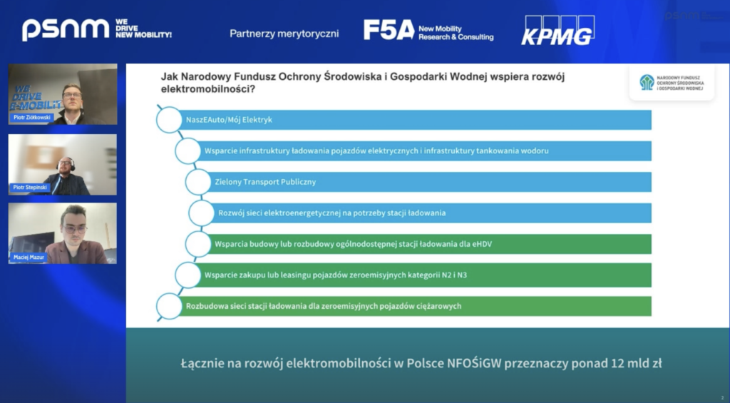 On 19 March, a webinar titled “Principles and Functioning of Support Programs for Electric Heavy Transport” took place. The meeting was organized as part of efforts to build awareness among market stakeholders in the eHDV sector regarding available mechanisms supporting the electrification of heavy-duty fleets and the development of charging infrastructure.