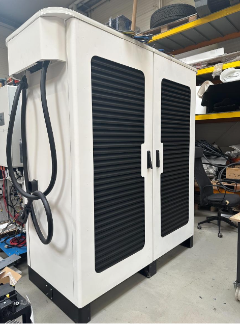 A distinctive element of the project is the development of an in-house V2G (Vehicle-to-Grid) charger. Instead of relying on off-the-shelf solutions, the project team is designing and implementing this component independently. This approach ensures full control over system functionality and allows it to be tailored to the specific requirements of heavy-duty transport and hub-based infrastructure.