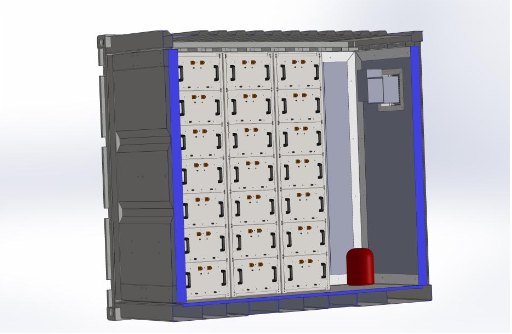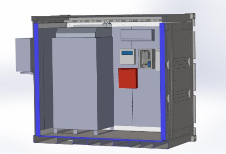 One of the core components under development is a containerized energy storage system. At the current stage, the 3D model of the system has been largely completed, allowing the project to move into the next phase – the construction of a physical prototype. The assembly process has already begun and is currently at an early stage. This represents a significant step toward validating the design assumptions under real-world conditions.